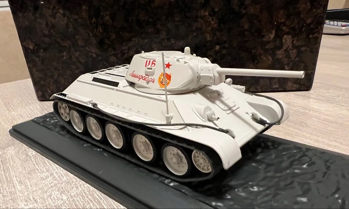Mô hình xe tăng T-34-76 huyền thoại với lớp sơn trắng mùa đông của cuộc phản công Moscow năm 1942.