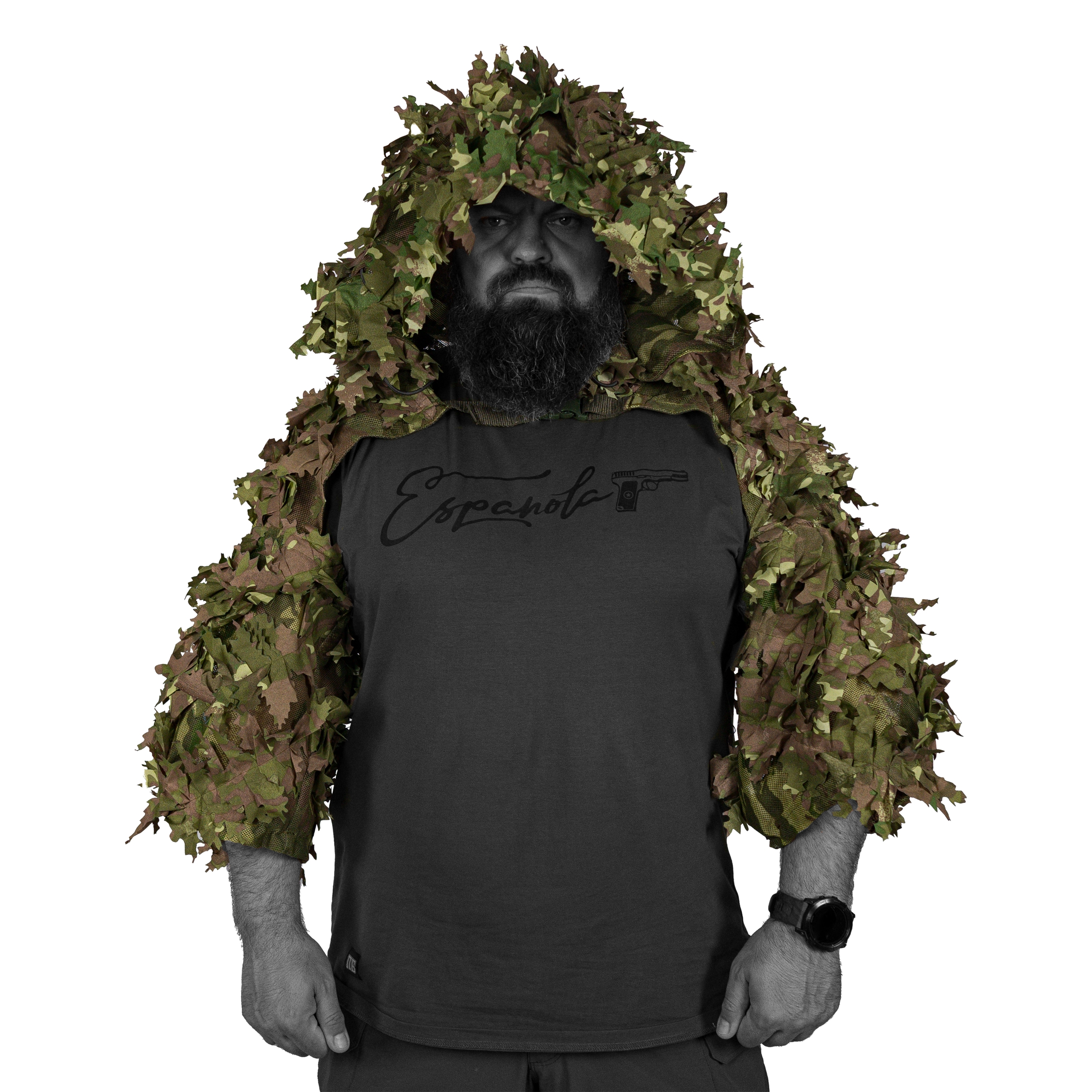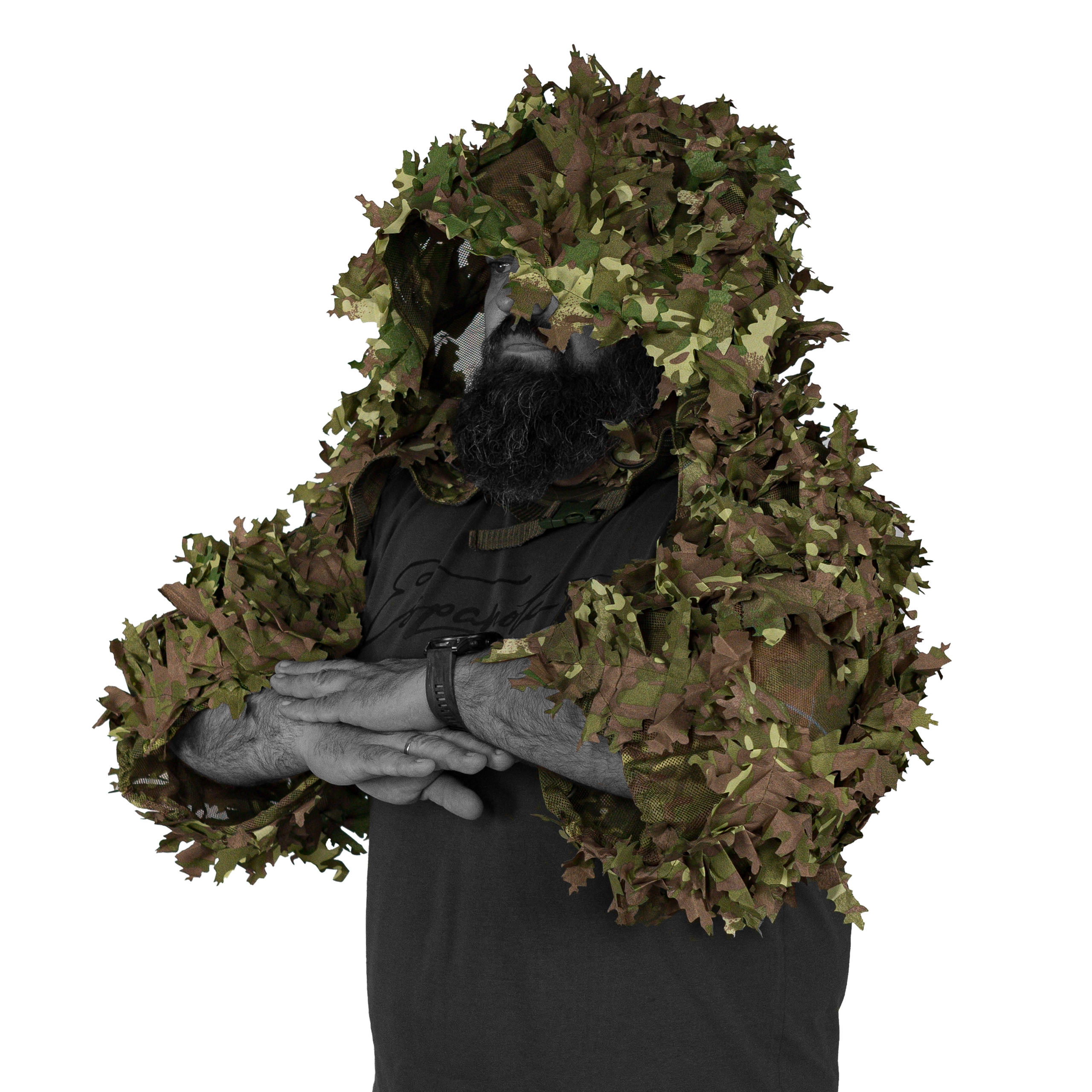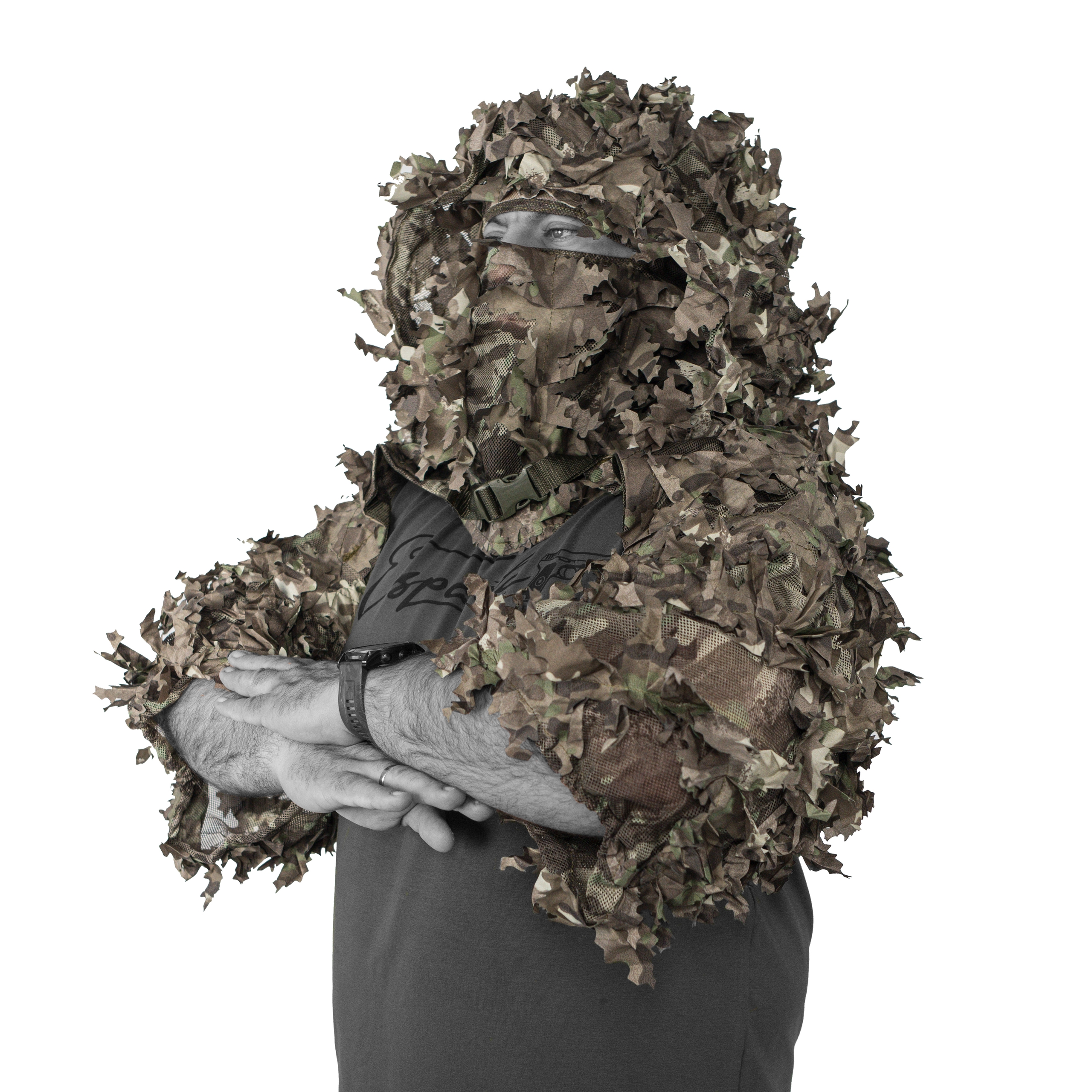 Thiết kế để choàng bên ngoài đồ dã chiến, áo giáp, vest làm tăng khả năng ngụy trang cho phần trên cơ thể. Vải ngụy trang là dạng lá 3D, dễ dàng hòa vào môi trường, hạn chế bộc lộ ảnh nhiệt.